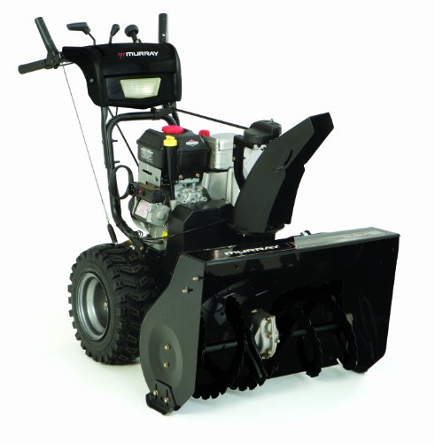Murray 1696029 27-Inch 205-cc Briggs and Stratton 1150 Snow Series Gas Powered Two Stage Snow Blower With Electric Start. Features Briggs and Stratton 1150 Snow Series OHV Engine, 11-1/2-feet-pound gross torque, 205cc, electric start, synthetic oil included, multi-speed drive system with 6 forward speeds and 2 reverse speeds, notched steel auger, non-clogging discharge chute rotates 190-Degree in 3.5 turns, 16-inch X-Trac self-cleaning tires and 2 year limited warranty. Murray products are durable, economically priced and easy to use. Murray offers a full range of outdoor power equipment such as walk-behind mowers, tractors and snow throwers. Murray makes yard and gardening projects trouble-free. So you can get it done. Go have fun.